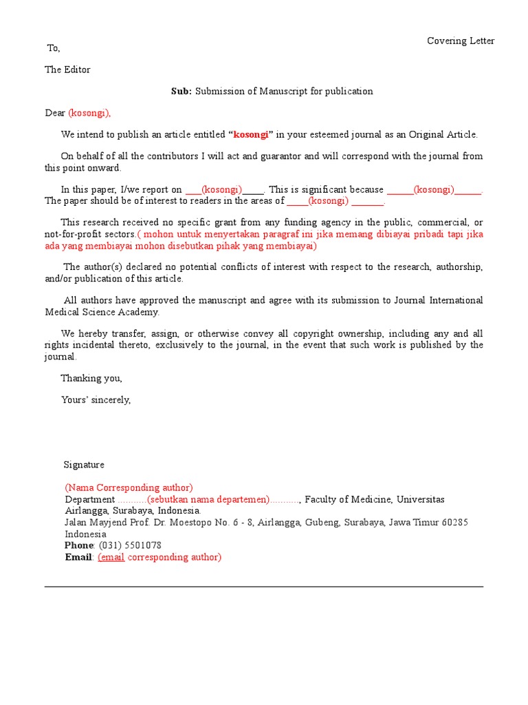 Https Www Springer Com Cda Content Document Cda Downloaddocument Annals Peer Review Manuscript Online First Pdf Sgwid 0 0 45 1126537 P173737515 from There are some components that should be submitted manuscript should be enclosed by a cover letter, a statement about any sponsor or other potential relationship that may cause conflict of. Your cover letter should convey your experience and skills as a medical professional or nurse. I will be an asset that helps bring in and retain patients through quality health care and customer service. Don't copy your abstract into your cover letter, instead explain in your own words the significance of the work, the problem that is being addressed, and why the manuscript belongs in the journal. Get cover letters for over 900 professions. Preparing research documents, articles, and manuscripts on a wide variety of medical topics. When writing a cover letter for a medical biller remember to present your relevant work history and skills according to the job you are applying for. The cover letter is your first formal interaction with a journal, and it embodies a request, so to speak, to consider your article for publication.